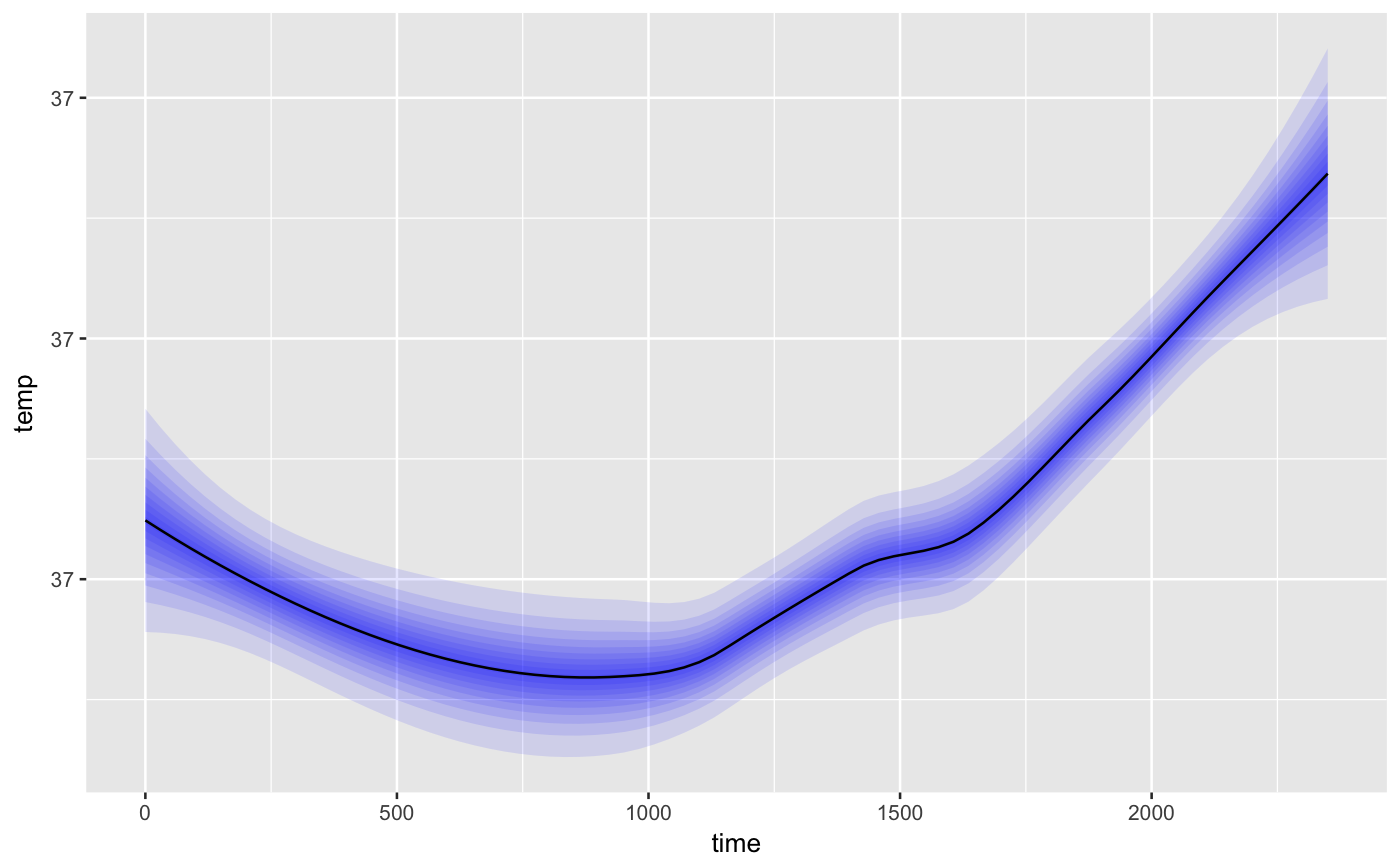 data(beavers) plot = ggplot2::ggplot(beaver1, ggplot2::aes(time, temp)) plot + geom_shady_smooth() + ggplot2::facet_wrap(~ day)#>#>#>#>plot + geom_shady_smooth(fill = 'blue', levels = seq(0.05,0.95,0.1))#>#>#>#>#>#>#>#>#>#>#>plot + geom_shady_smooth(size = 0.1, fill = '#49afcd', levels = seq(0.1,0.8,0.01))#>#>#>#>#>#>#>#>#>#>#>#>#>#>#>#>#>#>#>#>#>#>#>#>#>#>#>#>#>#>#>#>#>#>#>#>#>#>#>#>#>#>#>#>#>#>#>#>#>#>#>#>#>#>#>#>#>#>#>#>#>#>#>#>#>#>#>#>#>#>#>#>plot + geom_shady_smooth(fill_gradient = c('red', 'orange', 'yellow'), base_alpha = 3)#>#>#>#>